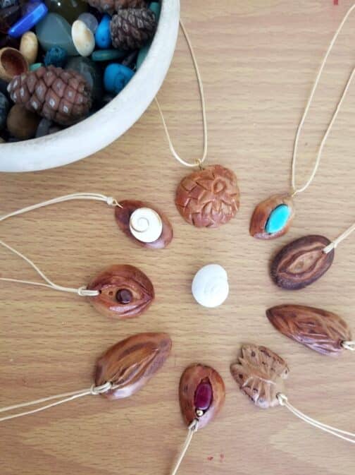 תליון בעיצוב נשי באורך של 3-4 ס"מ, מגולף בעבודת יד מגרעין אבוקדו. לאחר גילוף, יבוש, שיוף וציפוי גרעין האבוקדו נראה ומתנהג כמו עץ. התליון מחובר לחוט שעווה בהיר וארוך עם סגירה מתכווננת שמאפשר לך להתאים את האורך הרצוי.